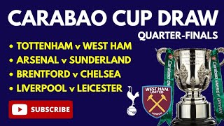 The Carabao Cup quarter-final draw takes place live on Soccer AM on Saturday - and you can watch it right here with Sky Sports. Tottenham v West Ham the pick of the last eight ties. Live coverage as Arsenal Brentford Chelsea Tottenham and West Ham are all in the hat for the quarter-finals alongside Leicester Liverpool and Sunderland.