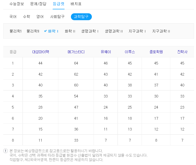 2020 수능 등급컷 원점수 국수 사탐 과탐1 과탐2 전체 네이버 블로그